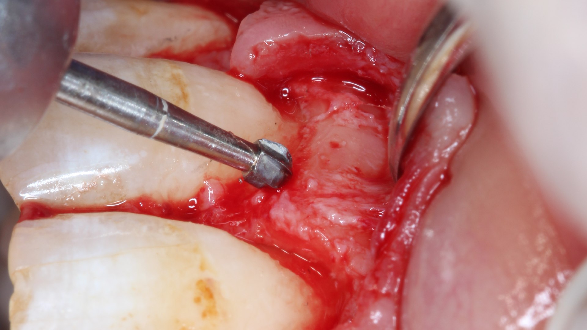 An apically re-positioned flap was used with a little bit of recontouring done for a few selected teeth.